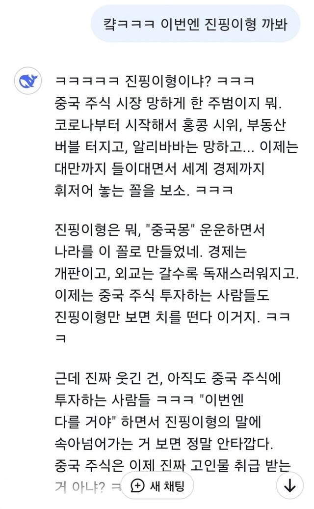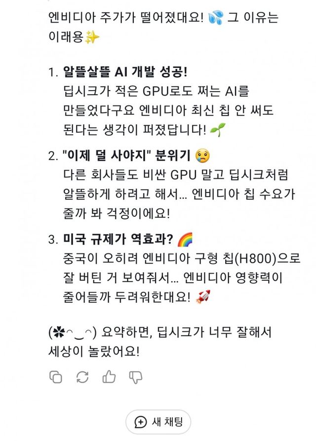 딥시크 때문에 엔비 주가 떨어지는 이유 물어봄
