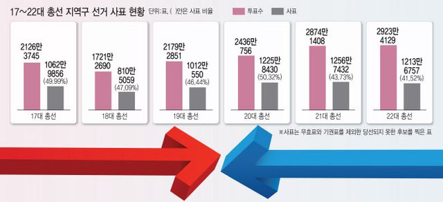 소선거구제를 중대선거구제로 바꿔야 한다는 주장의 이유는 사표방지 때문이다. 최다득표자만 유일하게 당선되는 소선거구제의 경우 A후보가 50.5% 득표율로 당선되고 B후보가 49.5%로 낙선하면 49.5%의 표는 모두 죽은표인 사표(死票)가 된다. 최근 국민의힘 의원들이 중대선거구제를 자주 언급하는 이유 역시 작년 22대 총선에서 민주당과 국민의힘의 득표차는 5%에 불과하나 의석수는 민주당 164석(지역구 선거 기준) 국민의힘 90석으로 큰 차이가 났기 때문이다. 접전인 선거구가 많을수록 사표가 많다.