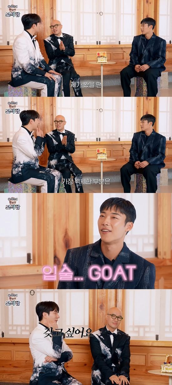 홍석천은 우도환의 매력포인트인 외모에 대해 "너무너무 섹시하다. 실제로 보니까 더 섹시하다. 눈도 섹시하고 코도 섹시한데, 제가 봤을 때 가장 섹시한 부분은 입술"이라면서 "살짝 입꼬리가 올라가면서 퇴폐미라는 게 있지 않나"라고 감탄했다.