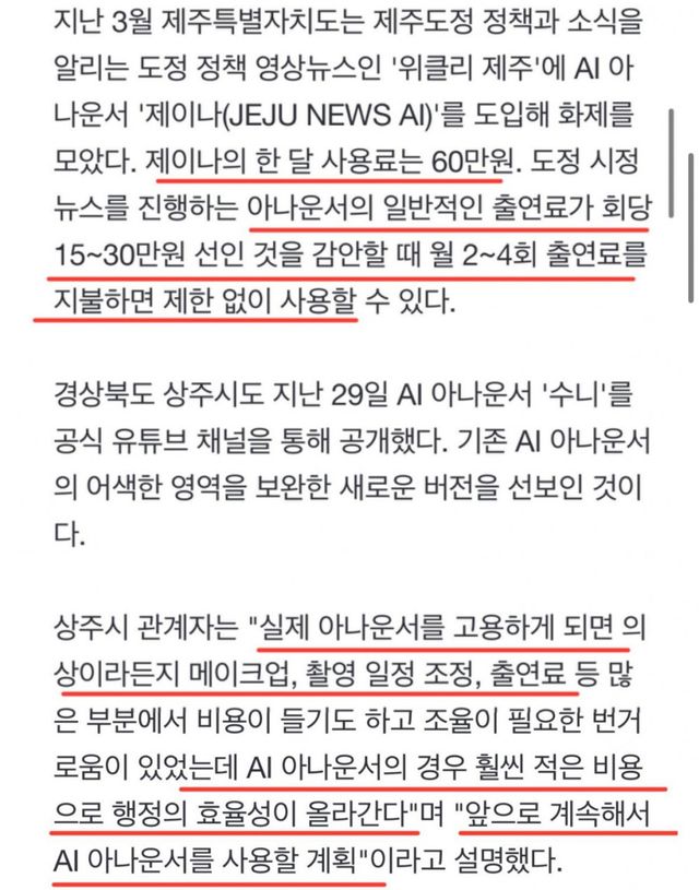 AI 아나운서 한달 60만원 으로 대체중