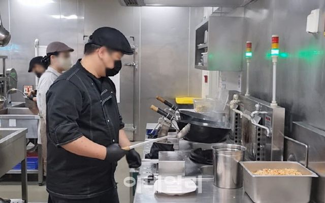 안산휴게소 1층 식당가 중국집에서 로봇웍을 이용해 음식을 조리하고 있다. (사진=한전진 기자)