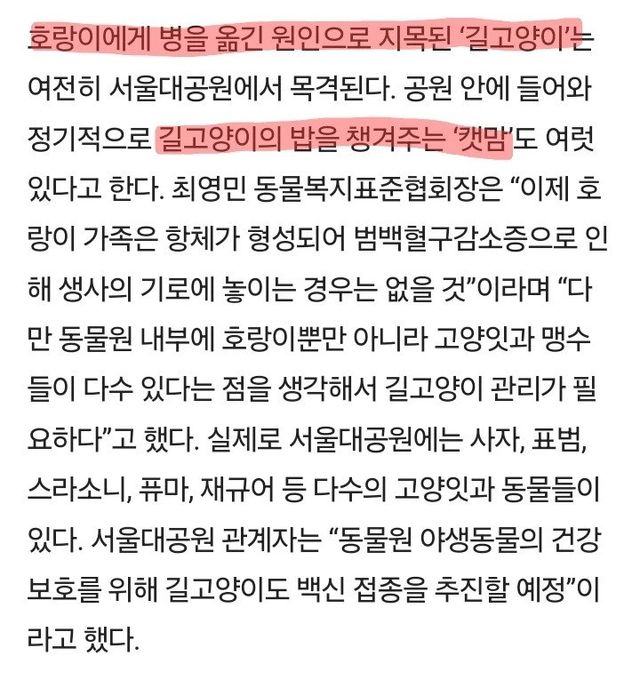 서울대공원 호랑이들을 죽인 원인으로 지목된 캣맘