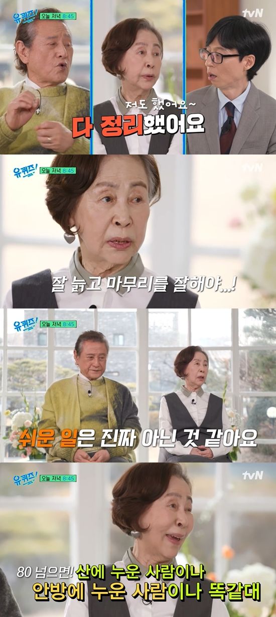 29일 오전 '유 퀴즈 온 더 튜브' 유튜브 채널에는 '"마무리를 잘하고 싶어요" 박근형 손숙이 준비하는 용감한 웰다잉'이라는 제목의 선공개 영상이 게재됐다.
