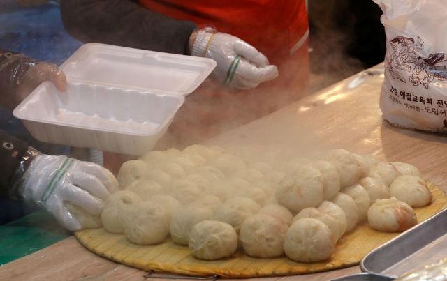 서울 최저기온이 영하8도 까지 떨어지는 등 한파가 찾아온 2022년 12월 4일 오후 서울 중구 남대문시장의 한 만두집에서 시민들이 따뜻한 만두를 구매하고 있다. / 뉴스1