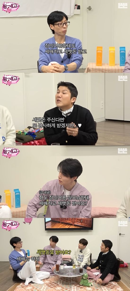 이에 유재석은 "아이, 야. 이거 왜 이렇게 속을 긁지"라고 어이없어했는데, 세뱃돈을 받는지가 궁금했다는 이동욱의 말에 "잠까만, 주셨나? 안 주셨겠지"라고 답했다. 그럼에도 세뱃돈을 받으면 기분이 좋다고 덧붙였다.