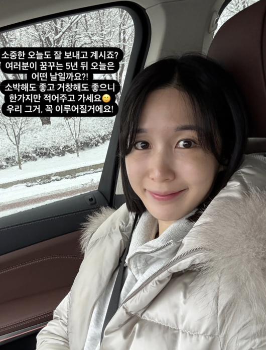 이어 "요즘 꿈꾸는 5년 뒤 오늘은 완치 판정을 받고 남편과 전쟁 같은 육퇴 후 한 잔하는 일상"이라며 "그것만으로도 충분할 것 같다. 물론 그때는 건강 관리를 철저히 하면서 남편이 사다 준 빈티지 와인을 바라보며 그날을 기다리고 있다"고 덧붙였다.