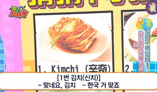 대놓고 파오차이가 아닌 김치라고 강조하는 대만 방송
