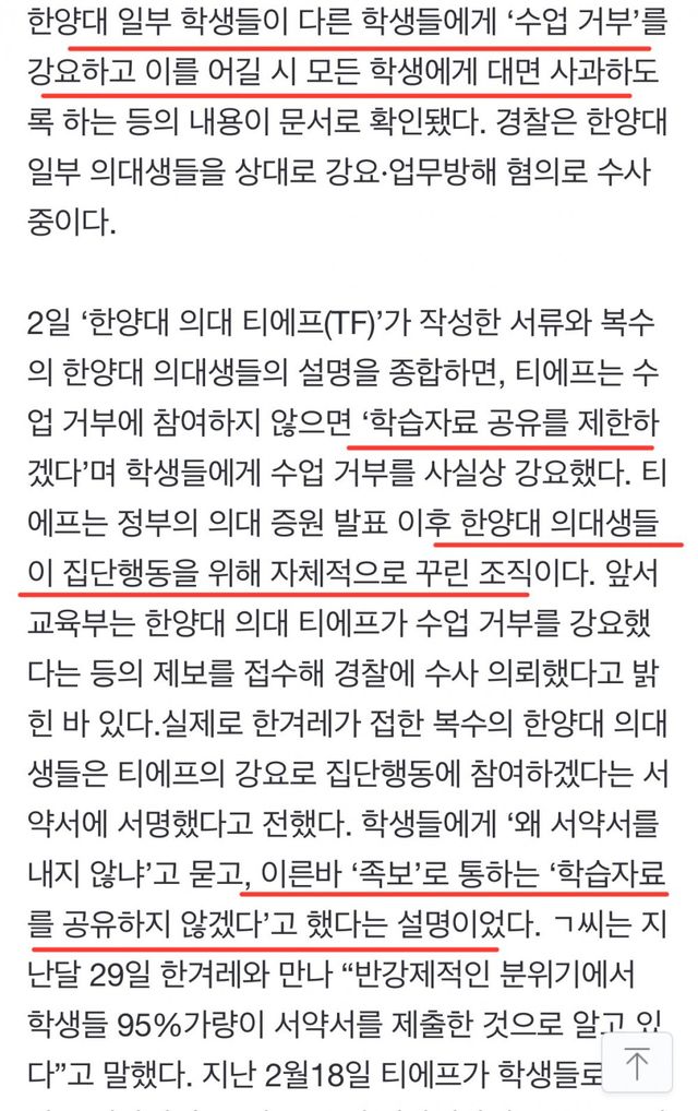 자기들끼리 조직 꾸려서 수업참여금지를 강요했다고함