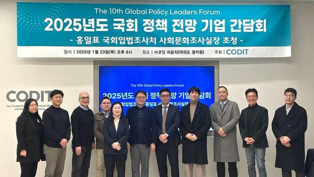 [이뉴스투데이 이승준 기자] AI 법·규제·정책 플랫폼 코딧(CODIT)은 부설 ‘글로벌정책실증연구소’가 지난 23일 ‘2025년도 국회 정책 전망 기업 간담회’ 주제로 제10회 코딧 글로벌 폴리시 리더스 포럼(Global Policy Leaders Forum)을 개최했다고 29일 밝혔다. 홍일표 국회 입법조사처 사회문화조사실장이 주제 강연을 한 이날 간담회에는 AWS코리아, 한국MSD, 한국베링거인겔하임, 파라다이스 등 국내외 주요 기업 15여개사가 참석했다.