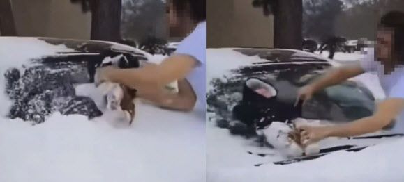 현재는 삭제된 영상에는 검은색 바지와 흰색 반소매 티셔츠를 입은 한 남성이 웃으면서 차량 앞뒤 유리창에 아이를 눕힌 채 밀어 올렸다 내렸다 하는 모습이 담겼다.