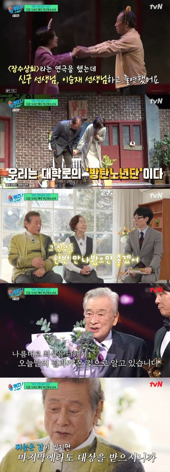 유재석은 "방탄노년단의 맏형이다. 이순재 선생님께서 KBS 연기대상에서 대상을 수상하셨다"라며 이순재를 언급했고, 박근형은 "뒤늦은 감이 있고 마지막에라도 대상을 받으시니까 저희들이야 기분이 좋다"라며 기뻐했다. 손숙은 "건강이 조금 안 좋으셔서"라며 걱정했고, 박근형은 "건강해져야지"라며 못박았다.