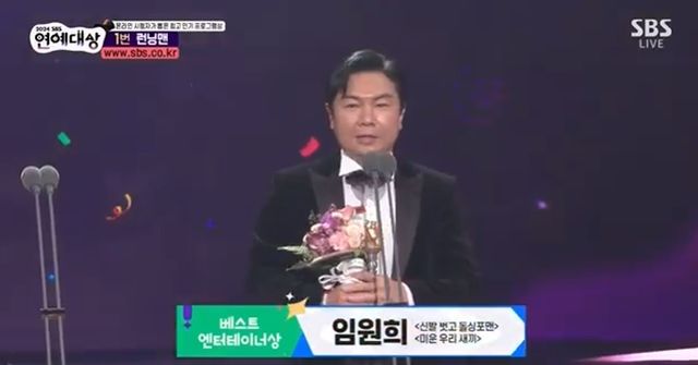 수상대에 오른 임원희는 "본격적으로 예능을 시작한 게 10년전 '정글의 법칙'이었다"며 SBS와 오랜 인연을 자랑했다.