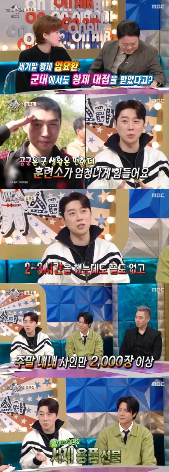 이날 방송에서 임요환은 군대에서도 황제 대접을 받았었다고 말하면서 "공군은 군생활은 편한데 훈련소가 힘들다. 힘든 와중에 저한테 사인회를 해줄 수 있냐고 요청을 하셨다"고 떠올렸다.
