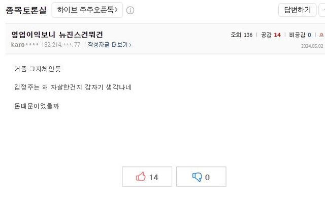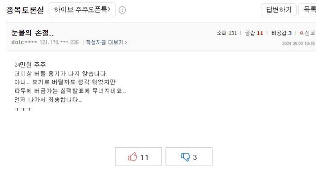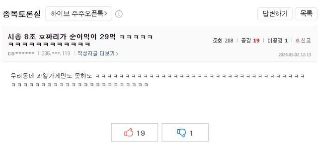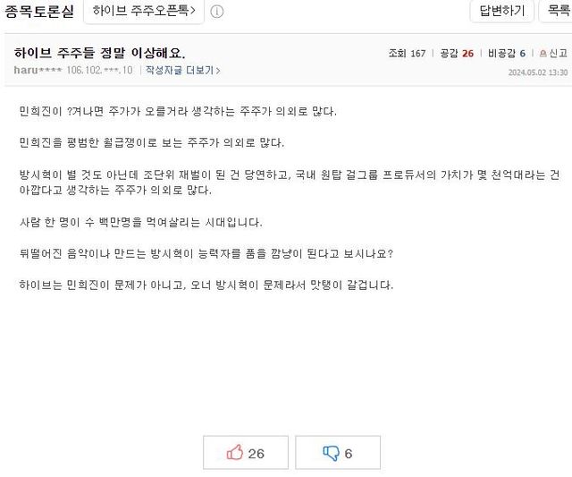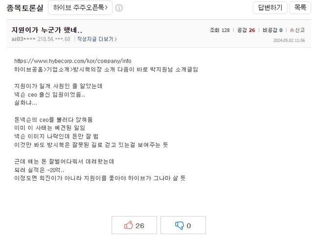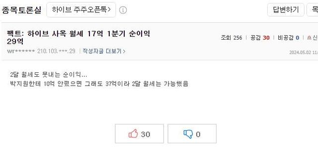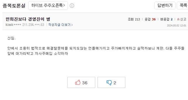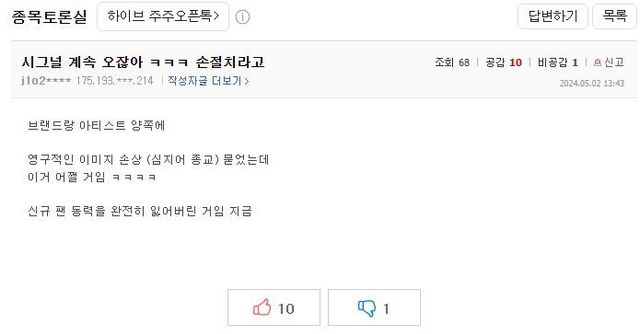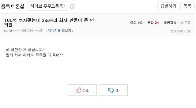 하이브 실적 폭망하고 난리난 하이브 종토방 상황