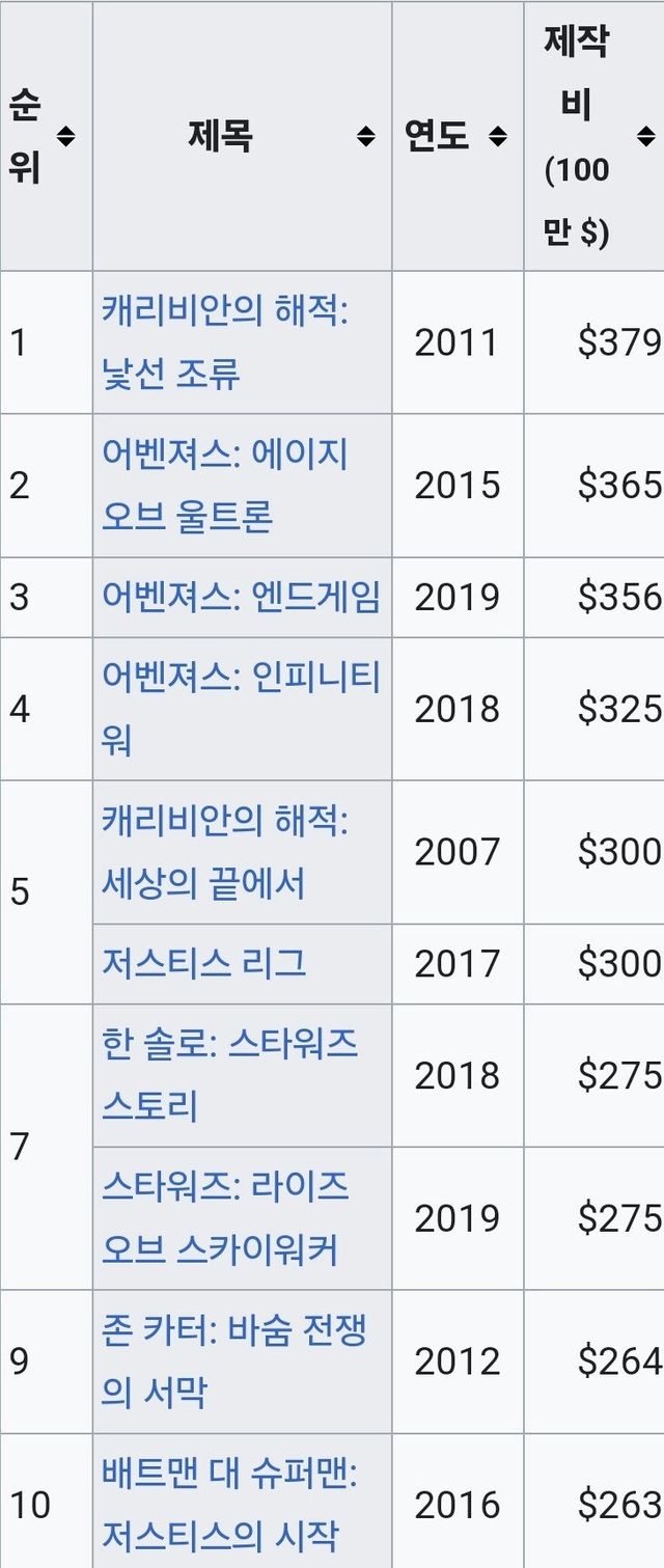 제작비 : 약 3억 7,900만 달러