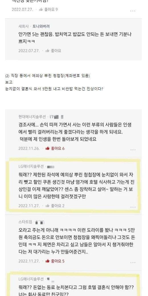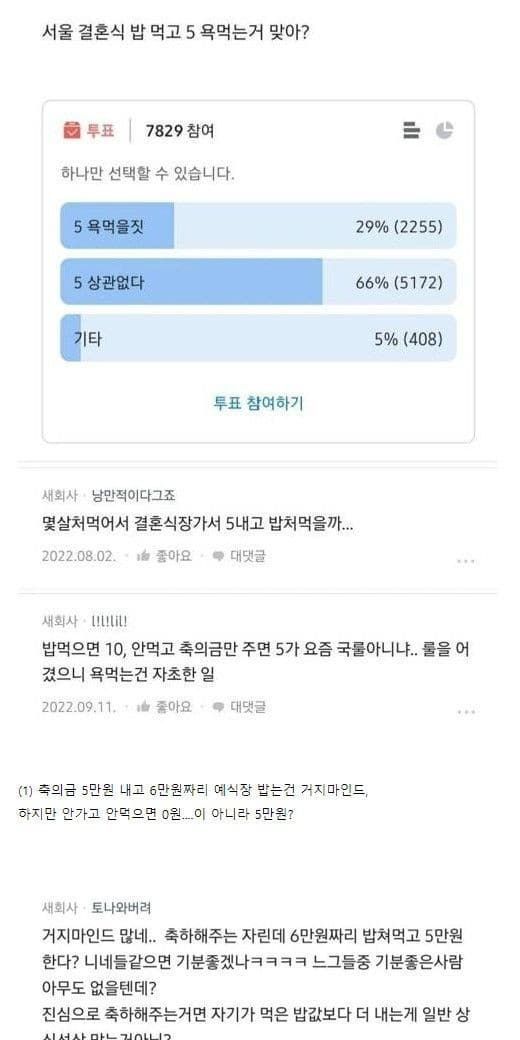 결혼식 축의금 5만원 vs 10만원 논란에서 이해가 안되는 부분