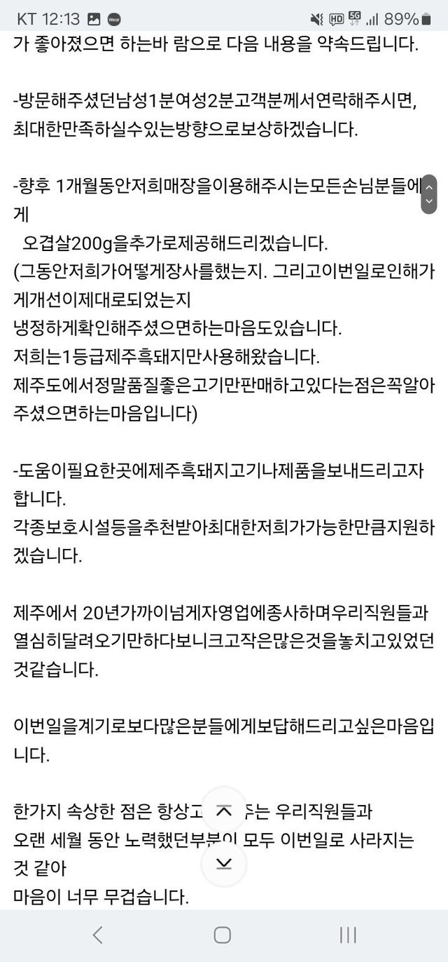 그간의 해명과 과정에 최초 고발한 손님이 빡쳐서 사과 안받아들임
