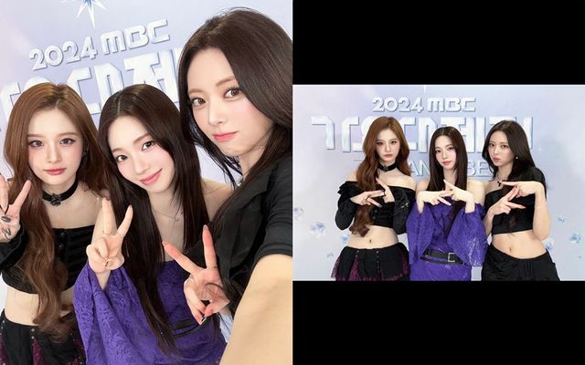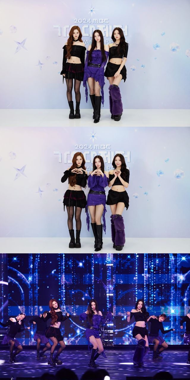 사진 속 세 사람은 '2024 MBC 가요대제전'이라는 글귀가 적힌 포토월 앞에 서서 깜찍한 브이 포즈를 취하고 있다. 이날 세 사람은 함께 'Pocket Rocket' 커버 무대를 펼치며 좋은 반응을 이끌었다.
