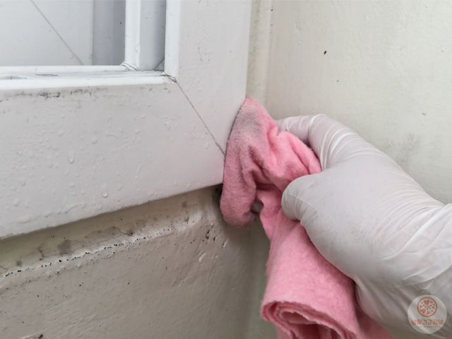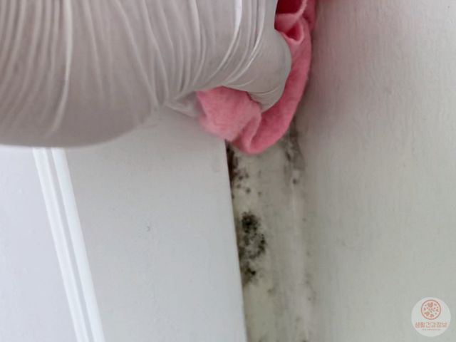 우선 마른 걸레로 곰팡이 핀 벽의 물기를 닦아주시고요.