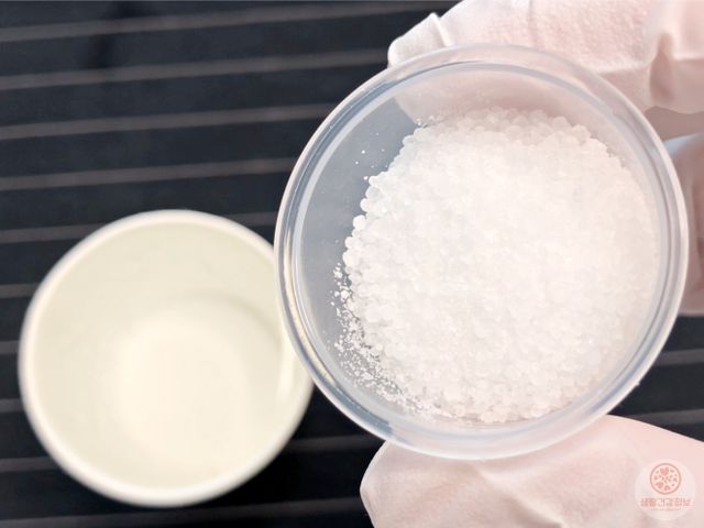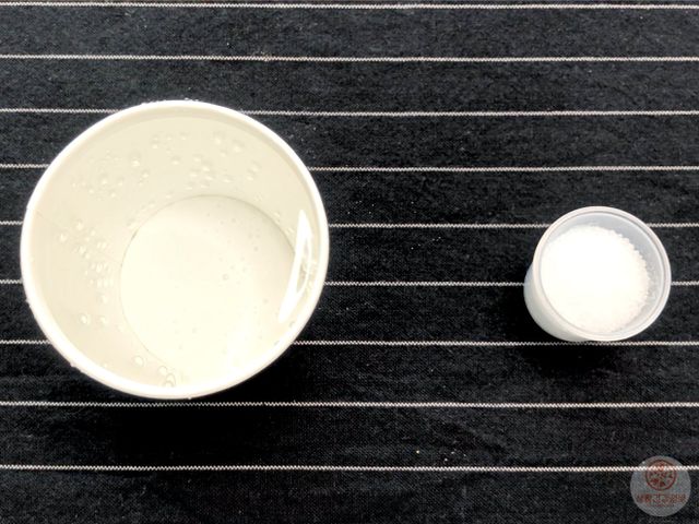 물 200ml에 구연산 1숟가락 섞으면 구연산수가 완성돼요.