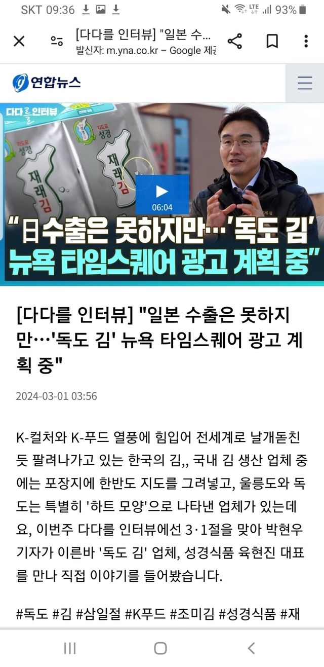 포장에 독도가 그려져 수출못함