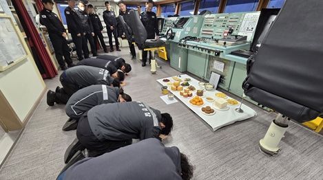 [와이뉴스] 중부지방해양경찰청 서해5도특별경비단은 29일 설 연휴를 맞아 서해 특정해역 경비 중인 3008함상에서 차례를 지냈다고 밝혔다.