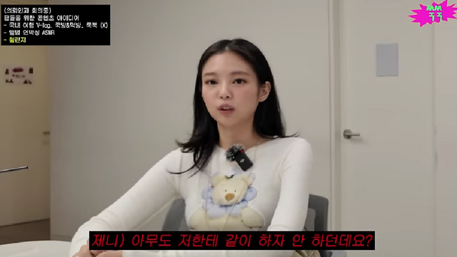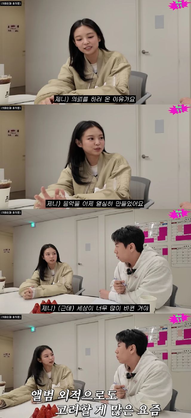 이에 제니는 "저는 갈 때마다 복도에 아무도 없다. 아무도 없는 날 가는 건가 내가? 저도 누가 나한테 '같이 합시다'고 하길 바랐는데 나한테 아무도 안 물어본다"고 아쉬움을 표했다.