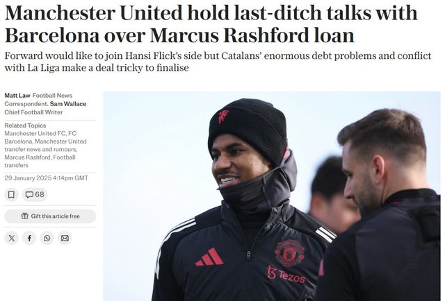 영국 매체 '텔레그래프'의 맷 로, 샘 월리스 기자는 30일 "래시포드가 임대 계약을 놓고 바르셀로나와 협상 중이다"라고 알렸다.