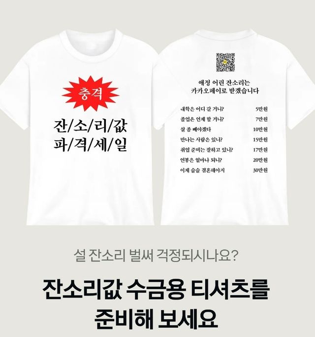 앞서 카카오페이가 지난 13~16일 나흘간 '잔소리 티셔츠' 이벤트를 진행했다. 티셔츠에는 '애정 어린 잔소리는 카카오페이로 받겠습니다'라는 메시지가 적혀 있다.