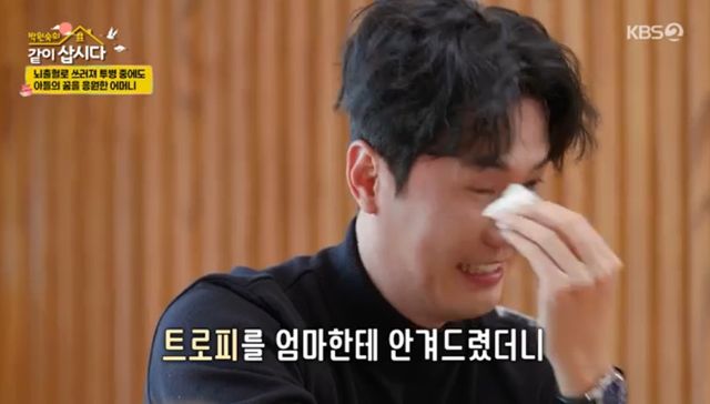신성은 "왕중왕전 우승을 해서 트로피를 받았다. 끝나자마자 들고 병원으로 갔다. 갔더니 안 계신 거다. 어디 가셨냐 했더니 어머니 운동하고 계신다고 하더라"라며 신성이 트로피를 거머쥔 후 재활에 노력을 이어간 어머니를 언급했다. 신성은 "'우리 아들 장하다'고 하시더라"라며 기적이 일어났다고 전했다.