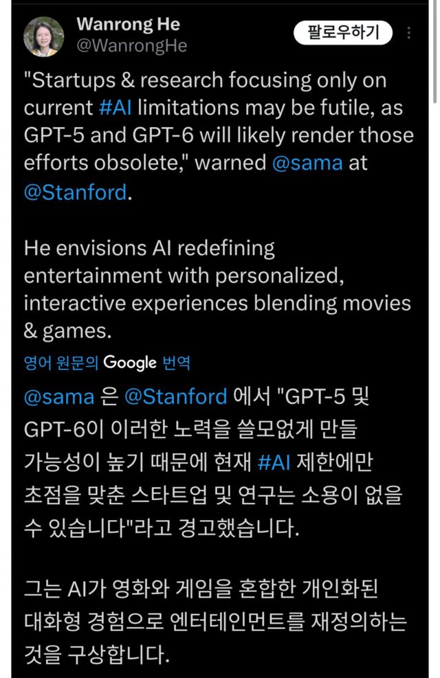 스타트업이나 연구는 GPT 5, 6 가 나오면