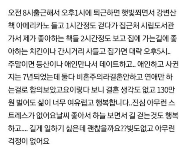 월 130벌어도 행복한데,이렇게 살아도 괜찮을까요?