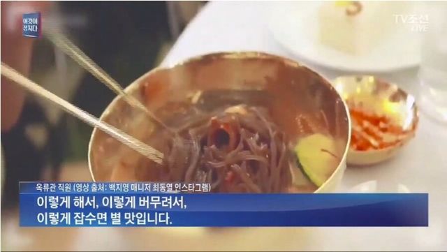 옥류관에서 쇠젓가락으로 잘만 먹음