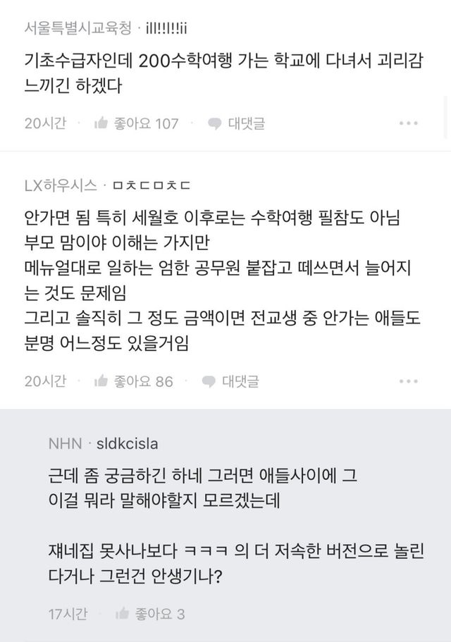 아들 수학여행비 200만원 지원해달라는 기초수급자