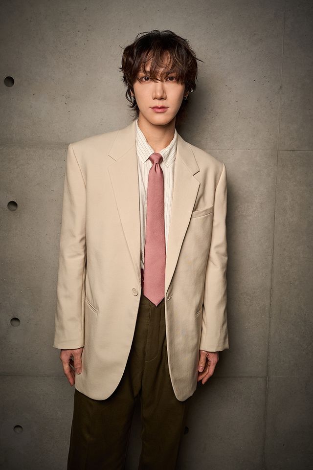 이날 텐은 라이트 베이지 컬러의 재킷, 스트라이프 튜닉 셔츠, 울 개버딘 배기팬츠를 매치, 글레이즈드 가죽 소재의 부츠, 실크 넥타이, 도트 무늬 손수건 등 디테일을 더한 클래식하면서도 세련된 슈트 룩을 선보여 뜨거운 호응을 얻었다.