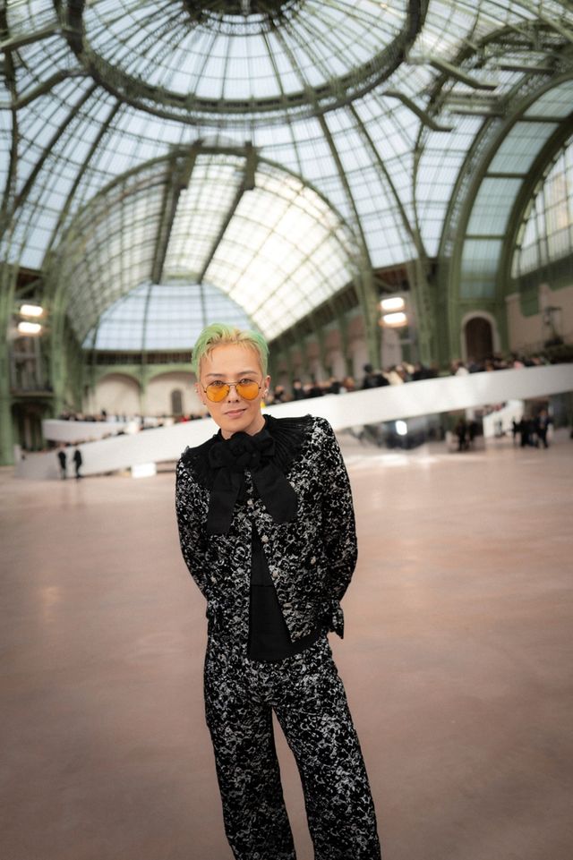 이날 지드래곤은 2024/25 공방 컬렉션 룩 36번의 블랙, 화이트 벨벳 레이스 재킷, 팬츠 셋업과 실크 모슬린 블라우스를 착용해 그 만의 유니크한 샤넬 패션 스타일링을 선보였다.