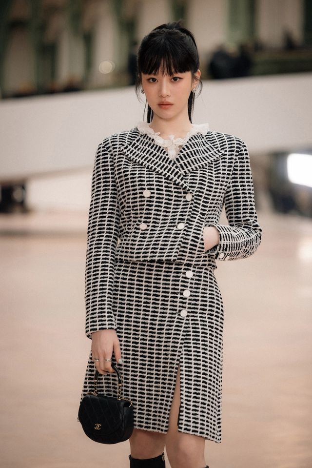 또한, 고윤정은 2025 봄-여름 레디-투-웨어 컬렉션 룩 6번의 트위드 재킷, 스커트 셋업과 모슬린 블라우스 및 2024/25 크루즈 컬렉션의 탑 핸들 플랩 백과 2025 봄-여름 레디-투-웨어 컬렉션의 이어링을 매치해 우아한 모먼트를 완성시켰다.