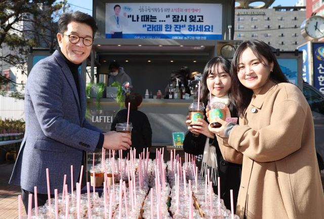 모든 직원에게 커피 등 음료를 무료로 제공하는 이날 행사에서는 정원오 성동구청장이 직접 직원들에게 음료를 전달하며 응원과 격려의 메시지를 전해 특별함을 더했다.
