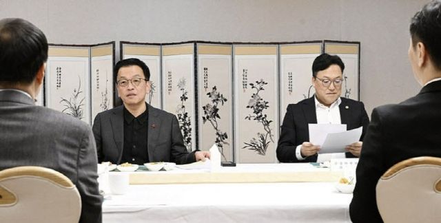 간담회에는 조태열 외교부 장관, 안덕근 산업통상자원부 장관, 방기선 국무조정실장, 성태윤 대통령실 정책실장 등이 참석했다.