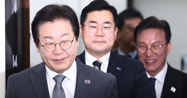 더불어민주당의 이재명 대표와 박찬대 원내대표 등 지도부가 31일 오전 서울 여의도 국회에서 열린 최고위원회의에 입장하고 있다. / 뉴스1