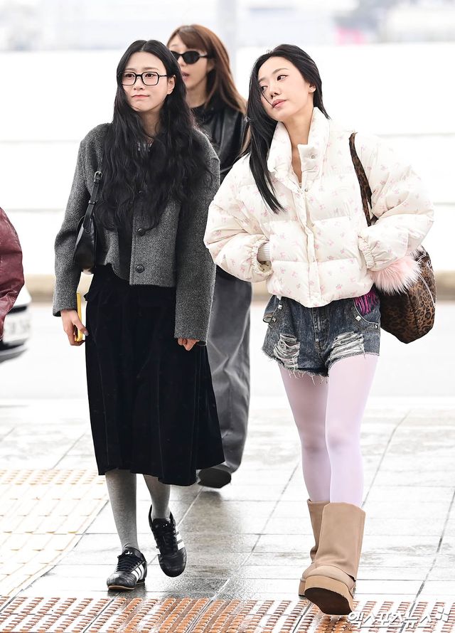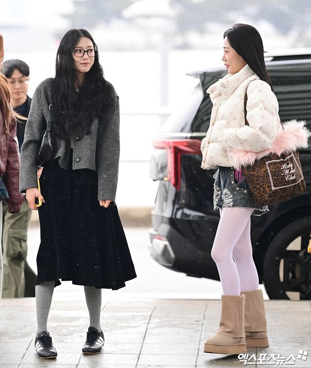에이핑크 오하영, 김남주가 출국장으로 향하고 있다.