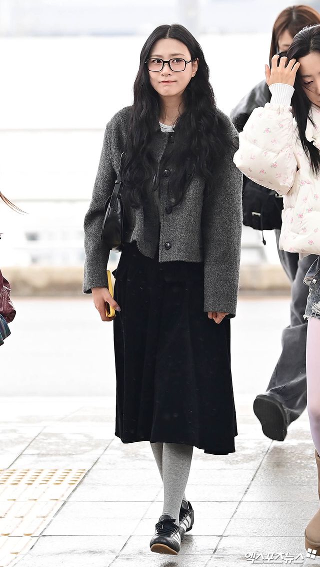 오하영, 모노톤 패션에 뿔테 안경까지