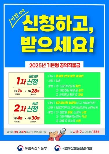 [와이뉴스] 남양주시는 오는 2월 1일부터 4월 30일까지‘2025년도 기본형 공익직불금 사업’신청·접수를 진행한다고 31일 밝혔다.