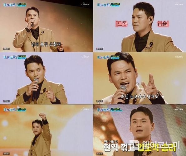 짜릿한 고음으로 도입부부터 모두를 기립시킨 그는 구성진 보컬과 특유의 매력적인 음색으로 트로트의 맛을 제대로 살리며 ‘트로트 신생아’의 반란을 제대로 알렸다.