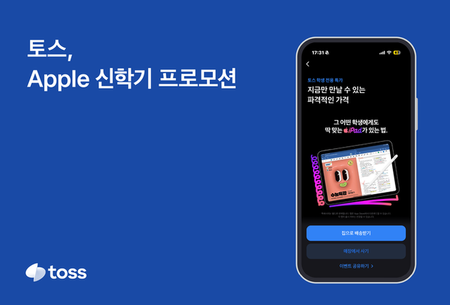 모바일 금융 서비스 '토스'를 운영하는 비바리퍼블리카는 새학기를 맞아 Apple과 할인 프로모션을 진행한다고 31일 밝혔다.