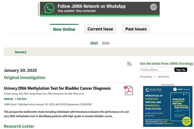 한편, 이번에 논문이 게재된 ‘JAMA 온콜로지’는 종양학 연구 분야에서 가장 권위 있는 학술지 중 하나로, 2024년 기준 피인용지수(Impact Factor) 22.3로 글로벌 학술계에서 높은 신뢰성을 자랑한다. ‘JAMA 온콜로지’는 종양학 연구 분야에서 상위 5% 이내에 해당해 연구의 신뢰성과 국제적 영향력을 증명하는 척도로 평가되며, 이 학술지에 발표된 연구는 뛰어난 연구성과와 학문적 기여를 의미하는 중요한 지표로 인정받고 있다.