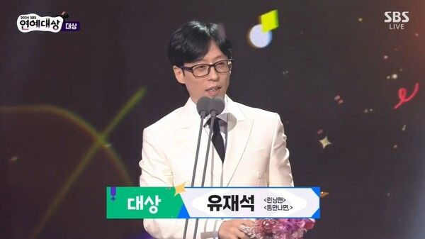 2024 SBS 연예대상'에서 유재석이 영예의 대상을 수상하며 20번째 대상 수상의 위업을 달성해 화제가 되고 있다.