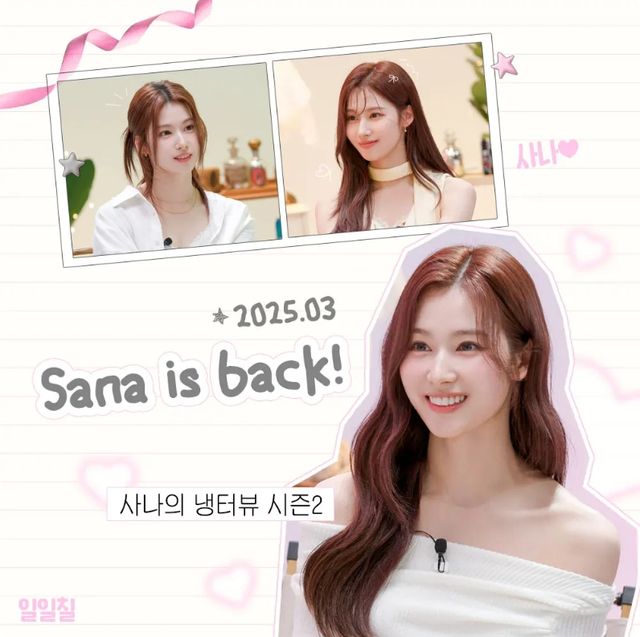 이와 함께 공개된 사진에는 사나가 스페셜 MC로 활약했던 '사나의 냉터뷰' 당시 스틸컷과 함께 "Sana is back!"이라는 문구가 적혔다.