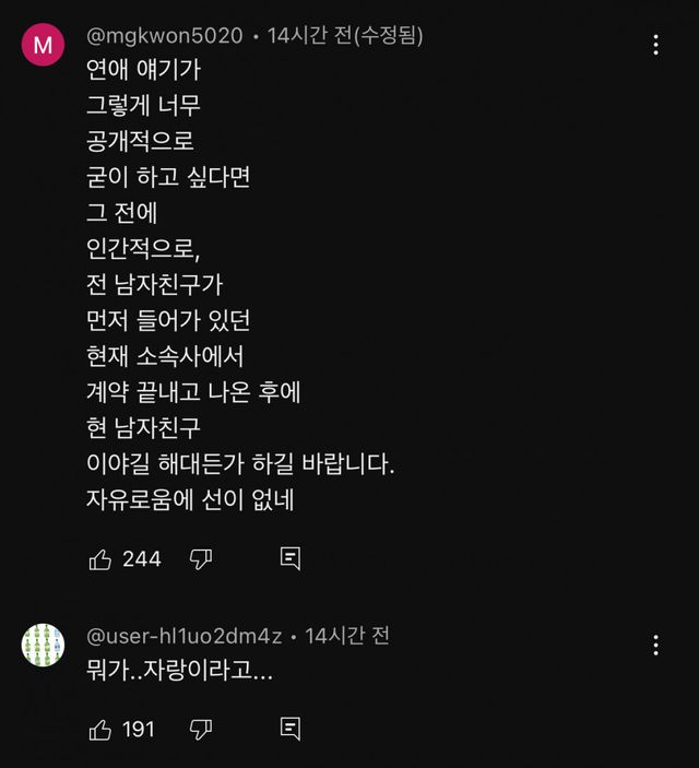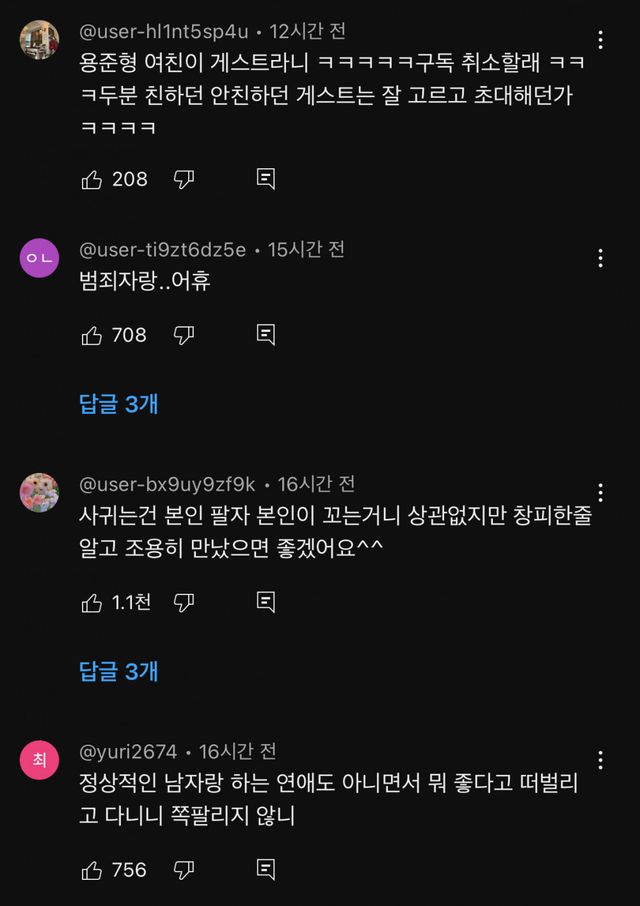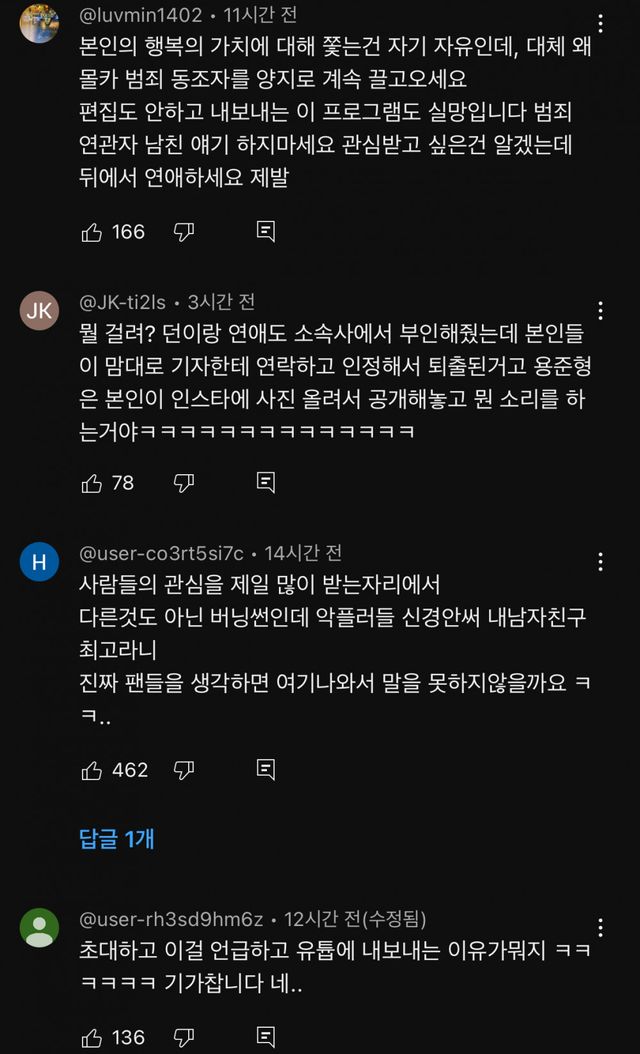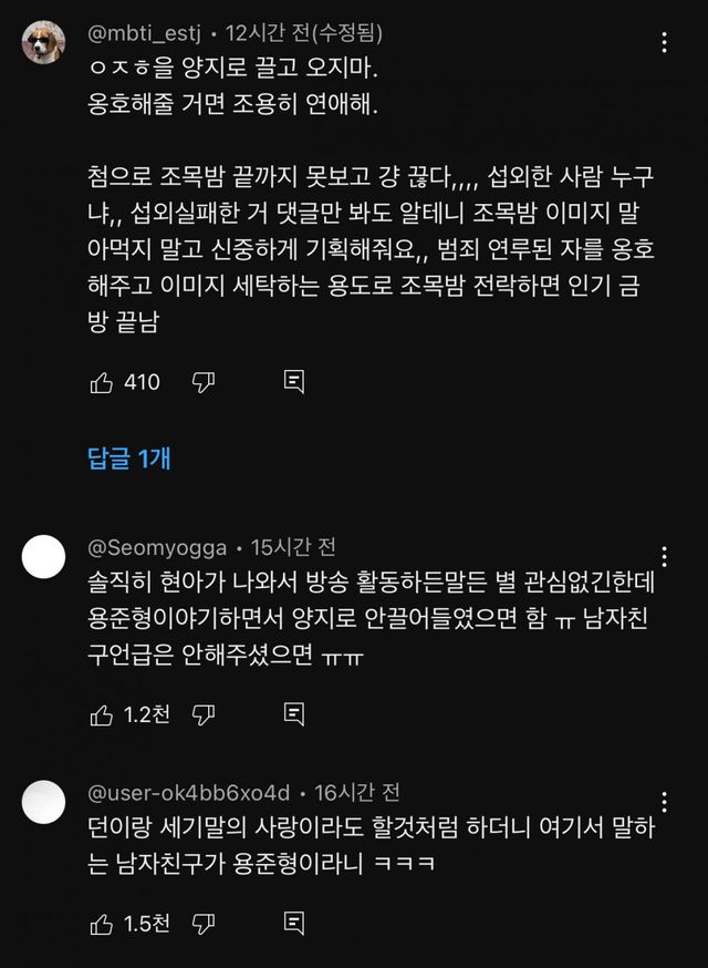 반응 엄청 안좋은 조목밤 현아 출연 댓글
