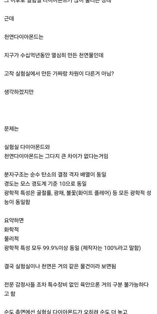 예전에 슈카월드였었나, 드비어스에서도 인공다이아몬드를 제작해 "더 싸게" 팔면서